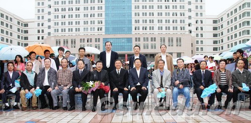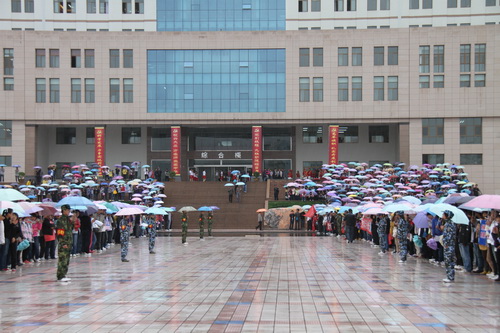 当天下午,得知余先生要来学校的消息,尽管下着雨,热情的师生早早地来到学校安亭广场,各式各样的雨伞在校园构成一道奇特而亮丽的风景线。当余先生走出轿车时,迎接他的是人海、鲜花、音乐和师生热情的欢呼声。在绵绵秋雨中,余先生与校领导以及师生合影留念。同学们举着余先生画像,打着五彩雨伞,喊着“余老师好”、“欢迎你,余老师”,不停地用手机拍照,争抢着签名。余先生频频招手,亲切地向师生打招呼,欢迎场面热烈而欢乐。