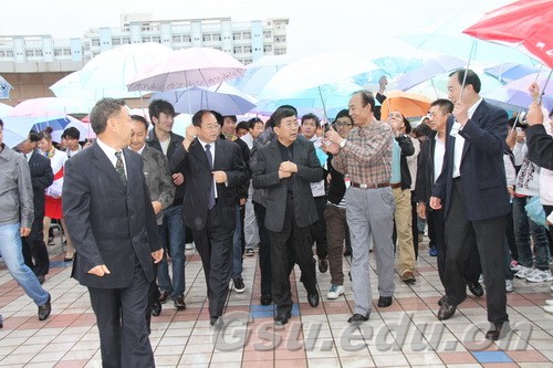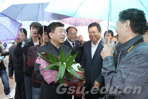 秋雨绵绵,丹桂飘香。2011年9月16日,国学大师、文化学者、散文作家余秋雨先生重返他阔别24载、曾经任教的甘肃联合大学。学校在安亭广场举行了热烈的欢迎仪式。校党委书记李志强,校长史百战,校党委副书记汪建华,副校长田建中,纪委书记杨扬,校长助理王克太、张焱,原校党委书记宋耀禄,校友代表、当年戏剧创作专业学生史民(甘肃省话剧院副书记、副院长)、牟瑜(甘肃省歌剧院原副院长、艺术总监)、马强(甘肃省国家安全厅十处副处长)、张亚杰(省委宣传部舆情信息中心处长)及全校3000余名师生参加欢迎仪式。