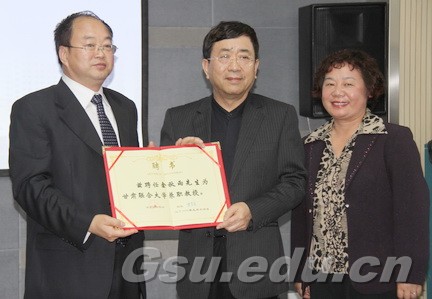 校长史百战教授向余秋雨先生颁发兼职教授聘书