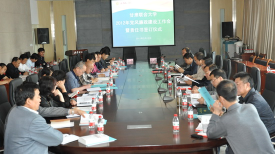 党委副书记、校长史百战同志就2012年学校党风廉政建设工作在会上做了重要讲话,强调指出要从为学校中心工作提供政治保障、推进“阳光治校”工程、扎实推进廉政文化进校园、全面推进惩防体系建设等方面提出了总体要求。并代表校党委与各单位党政负责人签订了党风廉政建设责任书。