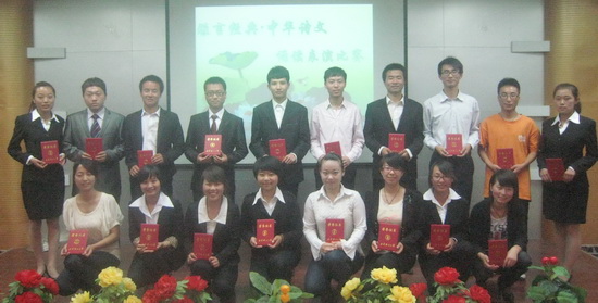 5月29日晚7:00,校团委、学生会在音乐楼学术报告厅举行以“诗意青春,放飞梦想”为主题的雅言经典・中华诗文诵读表演比赛。经过各院系选拔推荐的10支代表队共计18位选手参加了本次比赛。