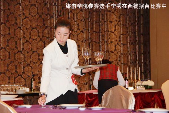 马晓霞、李秀分别获得中餐宴会摆台、西餐宴会摆台赛项院校组一等奖;孙玉龙获得厨艺展示赛项院校组二等奖;李欢欢获得中式铺床赛项院校组二等奖;旅游学院代表队获得此次赛事院校组团体一等奖。