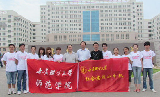 仪式结束后,师范学院党总书记裴东林、院长云聪、荆波老师和参加社会实践的同学们一起合影留念。