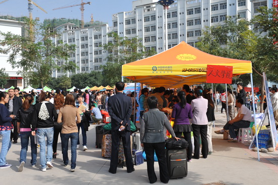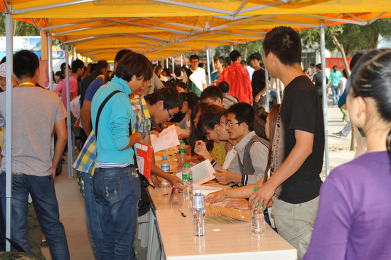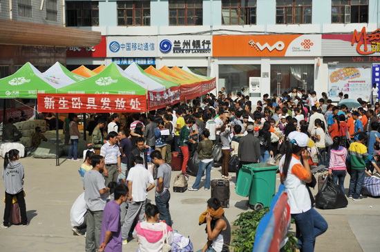 迎新点的工作人员在热情地接待新同学