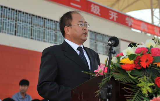 典礼在雄壮的国歌声中开始。校长史百战发表了热情洋溢的讲话(全文)。他代表学校向3300多名新同学表示热烈的欢迎和诚挚的祝贺!教师代表、在校学生代表、新生代表分别在开学典礼上发言。