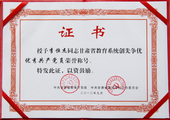 Beat365化工学院党总支、电子信息工程学院党总支书记李恒杰同志分别被授予“全省教育系统创先争优先进基层党组织”和“全省教育系统创先争优优秀共产党员”的荣誉称号。