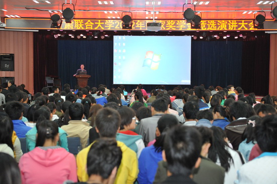 10月11日下午2:30,由学生处主办的甘肃联合大学2012年国家奖学金竞选演讲大会在思源楼萃文厅隆重举行。全校各院系分管学生工作的领导、部分教师、学生代表300余人参加了这次大会。评委由院系领导及11名各院系学生代表组成。大会由学生处处长李宗刚主持。
