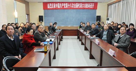 校领导、各处室院系领导集体收看十八大开幕式