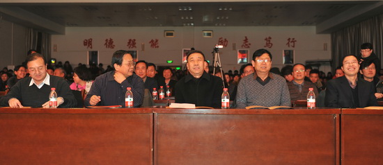 出席晚会的校领导李志强、汪建华、田建中、郑伟强、普登学