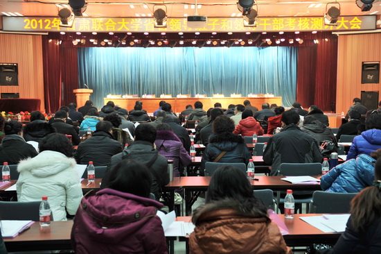 参加考核测评大会的有校领导班子成员、副处级以上干部、正教授和部分副高职称教师共140余人,校党委书记李志强同志主持测评大会。