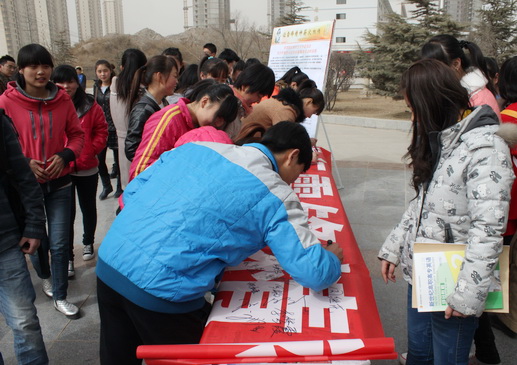 为传承和弘扬雷锋精神,引导青年学生成为勤俭节约风尚的传播者、实践者。3月1日,在“向雷锋同志学习”题词五十周年之际,校团委、学生会开展了以“践行雷锋精神,倡导勤俭节约”为主题的签名倡议宣传活动。