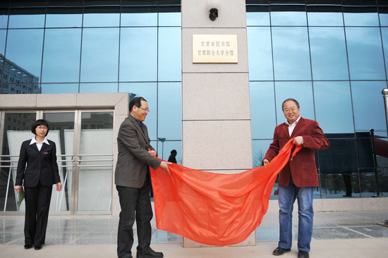 首先,校长史百战和甘肃省图书馆馆长郭向东为“甘肃省图书馆甘肃联合大学分馆”揭牌。