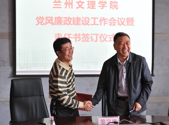 会议最后,党委书记李志强同志代表校党委与各单位党政负责人签订了党风廉政建设责任书。