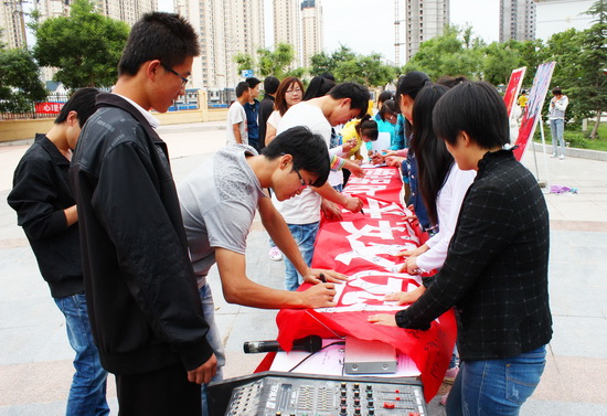 为在全校范围内广泛宣传各类安全知识,加强安全防范,提高全校师生安全意识,5月28日,校团委、学生会在雁苑广场组织开展了“增强防范意识,加强安全教育,创建平安校园”安全承诺签名宣传活动。