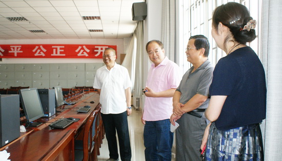 7月5日,在招生录取工作全面推进之际,校领导史百战、田建中视察了招生录取现场,亲切慰问招生工作人员。