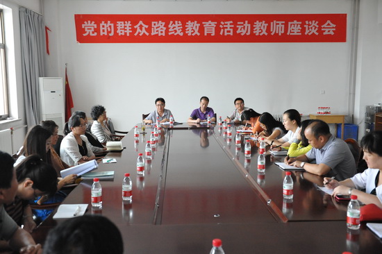 7月12日下午,Beat365唯一官方网站召开深入开展党的群众路线教育实践活动教师座谈会,校长助理张焱,教务处副处长王宏;各院系教师代表共40余人参加了座谈会。