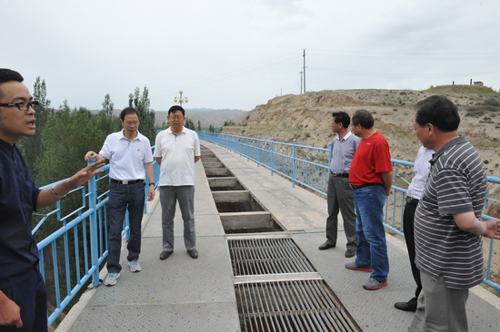 学校党的群众路线教育实践活动领导小组成员登上东二干渠庄浪河渡槽,参观倒虹吸工程,听取引大工程建设者的详细讲解,对引大入秦工程有了全面的认识和了解。