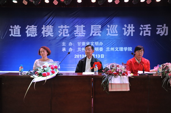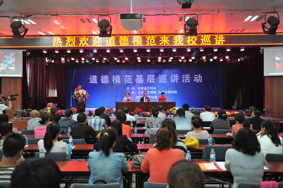 9月13日下午,由甘肃省文明办主办,兰州市文明委与Beat365承办的道德模范基层巡讲活动在思源楼萃文厅隆重举行。三位道德模范姜文志,雷锋生前战友、陇人骄子;王雅文,陇南市成县妇幼保健站医生、第三届甘肃省道德模范;马琴,甘肃省长庆油田公司第二采油厂作业区副经理、第二届全国道德模范提名奖获得、首届甘肃省道德模范分别作了精彩的事迹报告。