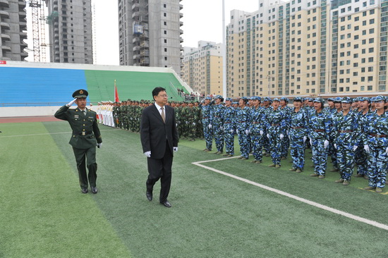 党委副书记汪建华检阅受训方队