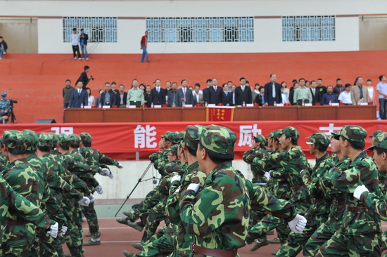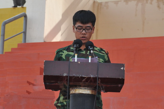上午9:00,大会在雄壮的国歌声中拉开序幕。随后,举行了阅兵式。党委副书记汪建华同志在军训团团长陪同下检阅了受训学生。在分列式表演中,由2013级学生组成的学生方队,喊着嘹亮的口号,迈着刚劲的步伐,依次通过主席台,同学们个个斗志昂扬气势,精神饱满,青春焕发,英姿飒爽,充分展现了同学们奋发向上的精神风貌和朝气蓬勃的青春魅力。精彩的分列式表演之后,进行了军体拳、队形变化、心理健康操等项目进行了演练,他们铿锵有力的声音,整齐划一的动作赢得了与会领导、老师和同学们热烈的掌声。