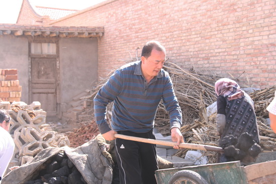 来到联系户张明瑞家门口时,张明瑞年近七旬的老母亲祁成兰正在一个人往院子里搬运炭块,杨书记连忙拿起铁锨大干起来,大家一起动手,帮忙把门口的一吨炭块运到了院子里的炭房里码放整齐。看到老奶奶高兴轻松的事情,杨书记很感欣慰。