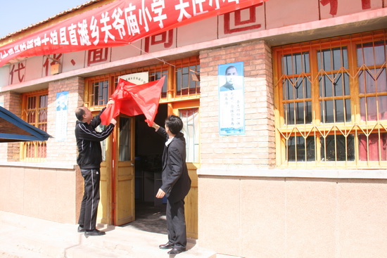 随后杨杨书记和教育局马福书记共同为援建的关爷庙小学计算机室和关庄小学计算机室揭牌。