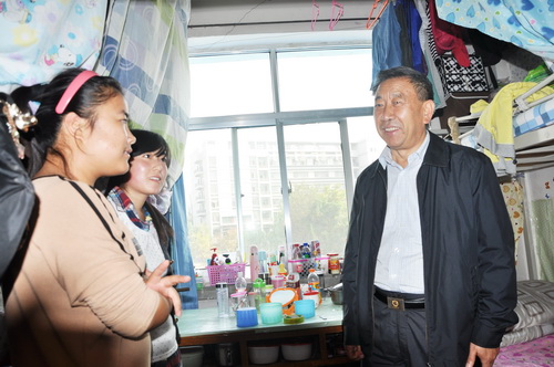 十一长假第一天上午,校党委书记李志强在校办、学校总值班、学生处、后勤处、保卫处、师范学院、政法系、物业公司值班人员的陪同下,逐一走访学生公寓,实地检查了公寓卫生和值班情况,并深入到图书馆自习室和学生宿舍了解十一长假期间学生的学习、休息情况。走访检查结束后,李书记对值班情况进行了点评,点名批评了个别宿舍卫生较差的学院。李书记要求假期值班人员恪尽职守,认真履行岗位职责,及时处理值班期间的相关具体事务,让师生共同度过一个安全祥和的十一长假。