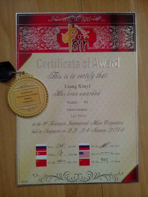 省艺校2012级小提琴专业学生梁心怡在不久前新加坡举办的“中新国际音乐比赛”中表现出色,荣获小提琴青少年组第一名(金奖)。梁心怡一直师从王怡老师学习小提琴,专业成绩非常突出,曾多次参加各级各类专业比赛均获优异成绩,这次在国际赛事中再获殊荣,显示出省艺校不断提高教学质量,发掘、培养尖子人才方面所做的不懈努力。
