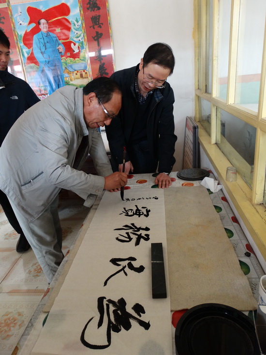 省政府参事、省文联副主席马国俊为学校驻村工作站书写了“为民务实”条幅