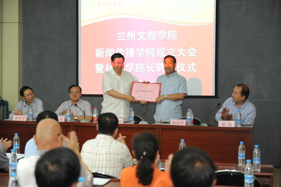 会上,纪委书记杨扬宣布了两个学院成立决定及学院领导班子任命决定。校长汪建华为杨改学同志颁发新闻传播学院院长聘书及一级责任教授聘书。新闻传播学院杨改学院长、党总支书记师克谦,数字媒体学院李恒杰院长分别发言。