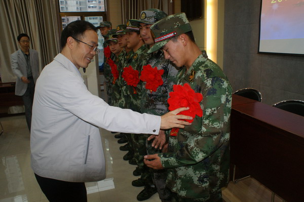 欢送会上,普登学副校长为应征入伍大学生佩戴光荣花,并发表了热情洋溢的讲话。他首先代表学校向应征入伍大学生表示祝贺,祝贺他们成为光荣的解放军、武警战士,承担起光荣而神圣的使命,学校为他们骄傲、自豪!他指出,参军入伍意味着开始了新的生活,面临着新的环境与考验,他希望同学们以良好的精神状态,积极转变行为方式,早日成为一名合格的战士。他祝愿同学们勇于担当,在部队刻苦训练,不断提高军政素质,为学校争光添彩。