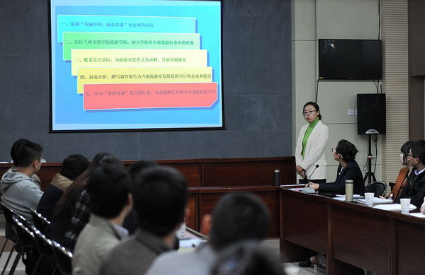 展评会上,来自校团委、文学院、外语学院、旅游学院、化工学院、社会管理学院、美术学院、师范学院、经管学院的13支实践队伍,以PPT展示结合现场演讲的方式对实践工作的具体开展情况做了详尽汇报。各支队伍都能按照原定实践计划,高质量完成实践任务,形成了一批宝贵的实践成果。总的来看,今年的暑期社会实践呈现出“高度重视、精心策划、及时发动,立意高远、进展火热、宣传广泛,上下联动、管理严格、形式新颖”等特点,取得了丰硕的成果。