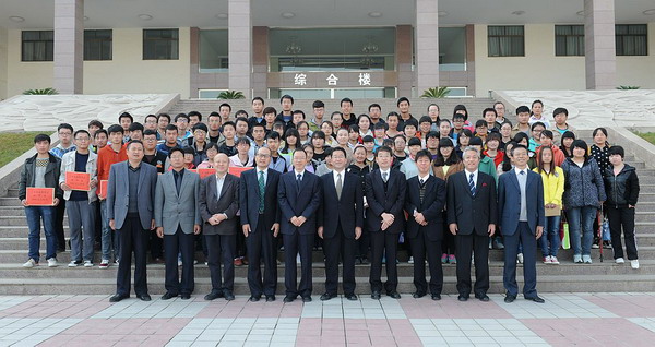 仪式结束后,代表团一行和受助同学亲切交谈,合影留念,并参观了校史馆。最后,校长汪建华亲切会见了代表团一行,对日本友人的无私捐助表示赞赏。