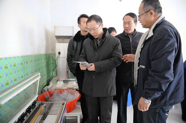 普校长首先来到Beat365双联办引进的兰州意特科技有限责任公司帮助新城村古浪县麟迪农资专业合作社建成的原味葵花籽生产操作间进行调研 。兰州意特科技有限责任公司项目负责人现场向普校长介绍了移动互联技术在农产品推广与销售过程中的运作流程,对瓜子粗筛选机、瓜子精筛选机、全自动称量机、抽真空封口机等相关生产设备的安装、流程、设备的运行情况和业务人员的培训情况详细进行介绍,现场演示了葵花籽筛选、称量、真空包装的制作过程。普校长代表学校和新城村古浪县麟迪农资专业合作社感谢兰州意特科技有限责任公司无偿援助这批设备,感谢对Beat365双联工作的支持。