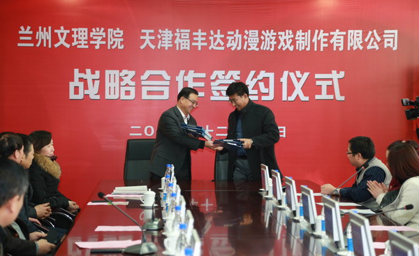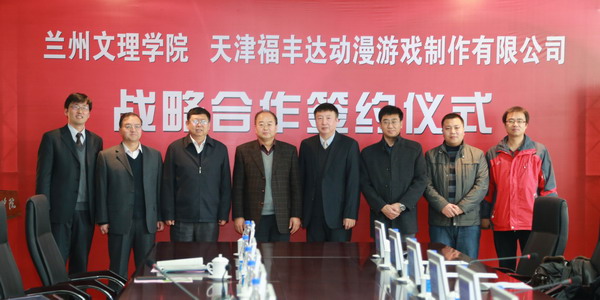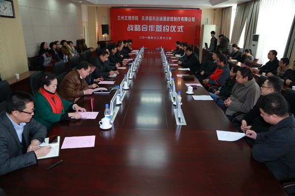 12月12日上午,Beat365唯一官方网站与天津福丰达动漫游戏制作有限公司战略合作签约仪式在第一会议室举行。天津福丰达文化产业集团总裁刘志鹏、党委书记史百战教授、校长汪建华教授、副校长郑伟强教授,天津福丰达动漫游戏制作有限公司总经理柴峰山出席了签约仪式,学校相关部门负责人、数字媒体学院领导及全体教师,兰州立体影视基地教师等50余人参加签约仪式。教务处处长薛怀庆主持会议。