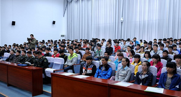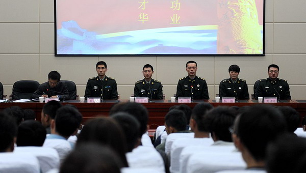 优秀大学生官兵代表:崔志恒、王生伟、李伟、杨丽、刘启阔分别就个人参军入伍的经历和部队训练、战备、战斗生活作了生动的演讲,他们携笔从戎、扎根基层、戍边卫国、无私奉献的感人情怀打动了在场全体人员,赢得了同学们经久不衰的掌声,同学们纷纷为官兵代表点赞。同学们表示:要积极响应祖国号召,踊跃报名参军,把个人梦融入强国梦、强军梦,为中华民族伟大复兴、为国防和军队现代化建设做出自己的贡献。