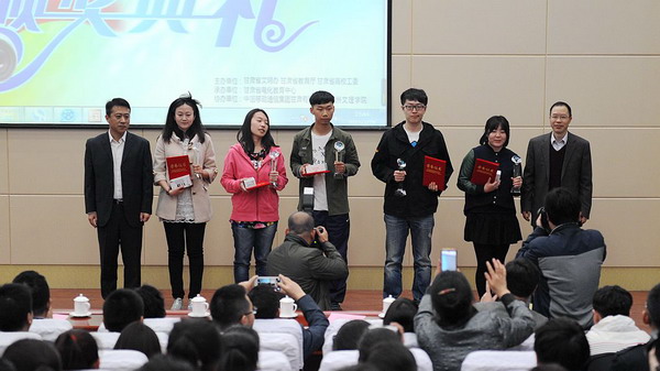 学校党委书记史百战代表学校致辞,对获奖学生表示祝贺。他说,大学生DV创作大赛鼓励青年学生通过镜头观察生活、反映生活、思考生活,是青年学生张扬个性、追求自我、描绘青春的重要平台。自2010年以来,已经连续成功举办五届,现已成为一项面向全省高校的专业化高水平赛事,吸引青年学生用独特视角和全新创意记录青春岁月、铭刻社会发展,为有志投身文化创意和影视创作的青年学生搭建了一个展示平台,推出了一大批集思想性、艺术性、现实性、观赏性于一体的优秀作品,为文化产业发展和影视创作培养了人才,并提供了良好的资源储备。中国移动通信集团甘肃有限公司副总经理陈宏涛,甘肃省高校工委副书记贾宁分别代表大赛协办方、主办方向颁奖典礼致辞。