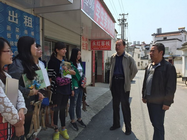 为了进一步提高学院写生课程的质量,加强外出师生的安全意识,校纪委书记杨扬、 美术学院党总支书记贾志明一行与4月13日上午,前往安徽宏村探望在外写生的2013级美术专业师生。杨书记考察了写生基地的基本条件和设施,观摩了写生课程上课的全过程,同时与学生进行了深入的交流,了解学生的想法和建议,杨书记强调学生外出安全的重要性,要求师生在提高技艺陶冶情操的过程中,加强自我约束保证安全有效的完成此次写生课程的任务。