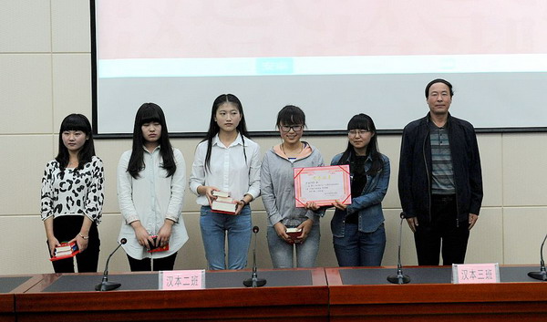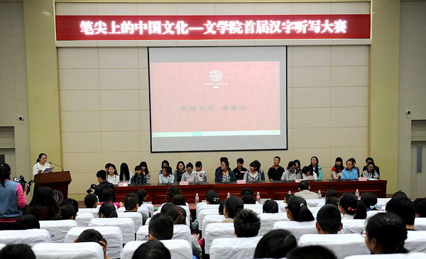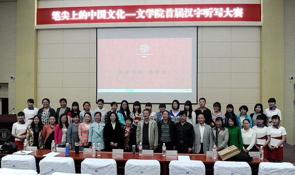 5月7日下午,文学院在综合楼学术报告厅举办了“笔尖上的中国文化――文学院首届汉字听写大赛”。宣传部郑建勤部长、教务处督导孙绿江教授、刘忠教授出席了本次活动。经过五轮紧张激烈的角逐,我院张笑雪同学喜获第一名,秦乐、雷倩同学分别获得第二名和第三名,2014级汉语言文学1班获得优秀团队。最后,教学督导孙绿江教授作了精彩点评,充分肯定了本次活动及其意义,对学院的精心组织、安排和同学们的表现给予了高度赞扬和肯定,并提议将该活动拓展为全校性的活动。