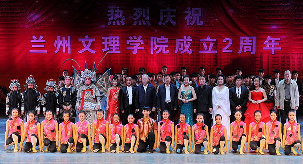 晚会结束后,校领导与全体演职人员合影留念。
