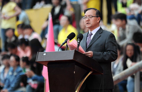 入场后,副校长郑伟强致开幕词,他首先对本次运动会的开幕表示祝贺,对全体运动员和裁判员表示问候,他说,体育运动不仅锻炼学生身心,活跃校园文化,而且有助于增强集体观念、提高思想认识、培养优良品质。学校高度重视体育事业,在各单位的精心配合和组织下,在全校师生的积极参与和共同努力下,学校的体育事业蓬勃发展,青年强则中国强,希望广大学生能继续努力,展现亮丽风采,在学校体育事业的画卷上写下浓墨重彩的一笔,以饱满的热情和高昂的斗志塑造新一代文理人。最后,他预祝运动员取得优异成绩,运动会取得圆满成功,并宣布本届运动会开幕。