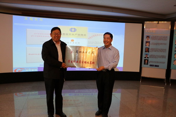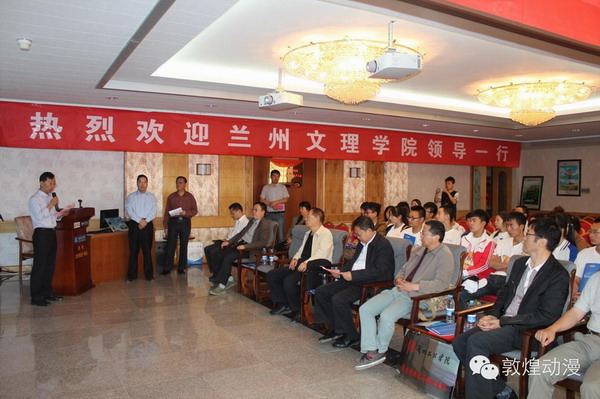 南特集团董事长南振岐先生发表讲话,介绍了南特集团及敦煌文化创意产业园在文化产业方面取得的丰硕成果,憧憬校企合作带来更大的发展空间。