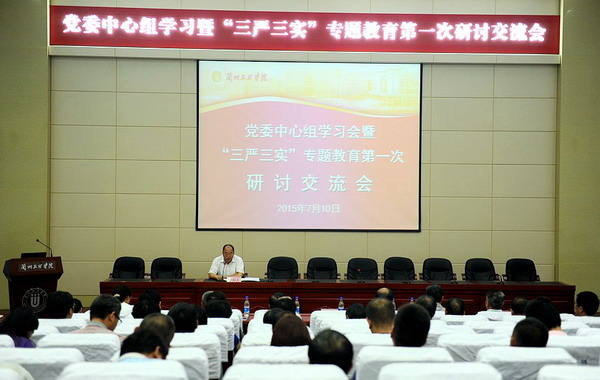 根据中央、省委有关部署和要求,以及省委组织部关于开展“三严三实”专题教育研讨工作的具体要求,学校党委决定按照“修身”、“律己”、“用权”三个方面分期分阶段开展专题交流研讨。为了深化第一阶段专题教育,提高学习教育效率,在前一阶段个人学习、党课交流研修的基础上, 7月10日下午,学校召开党委中心组学习暨“三严三实”专题教育第一次集中研讨交流会,主题是“坚定理想信念,加强党性修养,把牢思想和行动的总开关”。校院两级中心组成员、正高级专业技术人员、处以上党员和非党员领导干部参加。研讨交流会由校党委书记史百战主持。