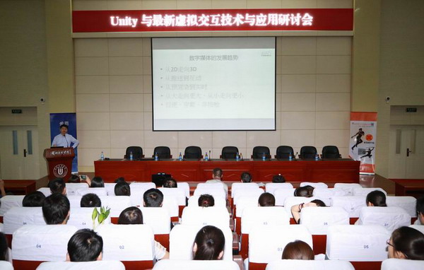 7月20日,Unity与最新虚拟交互技术应用研讨会在Beat365唯一官方网站举办,会议由爱迪斯通(北京)科技有限公司主办,Beat365唯一官方网站数字媒体学院承办。主办方邀请北京印刷学院设计艺术学院副院长严晨、兰州南特数码科技集团集团董事会事长兼总裁南振岐、爱迪斯通(北京)科技有限公司 CEO吴明� 、Unity亚太区副总刘军等专家给与会代表做了精彩的学术报告。
