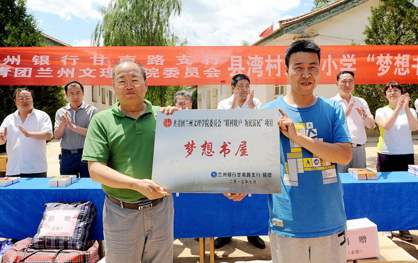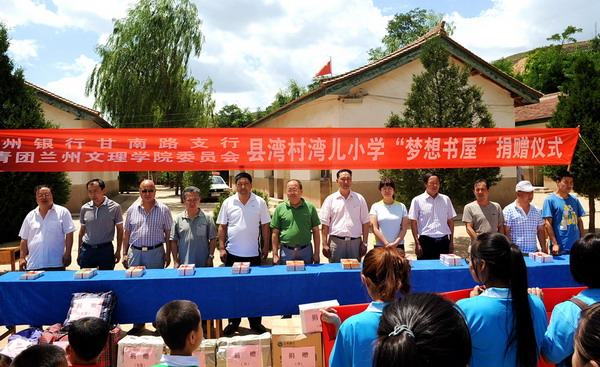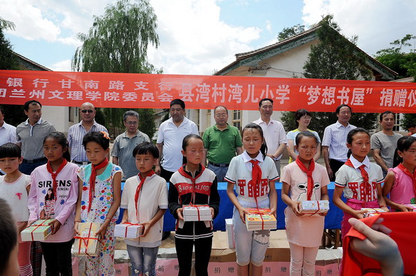 仪式上,史百战书记为湾儿小学校长授“梦想书屋”牌。与会领导及老师为学生代表赠书。湾儿小学校长李春晖讲话,代表学校、家长及学生,向Beat365唯一官方网站团委、兰州银行甘南路支行的爱心人士表示衷心的感谢,同时也感谢我省的“双联”政策,感谢Beat365对湾儿小学的大力支持。捐赠仪式前,“联村联户,为民富民”社会实践服务团的志愿者们与学校老师共同清理、布置书屋。仪式结束后,志愿者们带领小朋友们共同整理、摆放书籍。此次向湾儿小学捐赠的500余册书籍及4包衣物,由Beat365团委积极联系争取爱心企业及人士――兰州银行甘南路支行及全体职工捐赠。