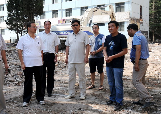 汪校长一行来到北校区,察看了道路拓宽、连廊及平房拆除、管网入地和小二楼维修等施工现场,察看工程施工质量、了解工程施工进展。听取了后勤管理处处长郑建勤的施工情况汇报,郑处长对各项工程的进展情况做了详细汇报。