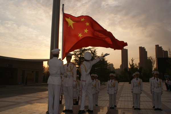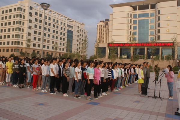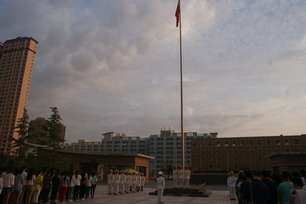 在中国人民抗日战争暨世界反法西斯战争胜利70周年纪念日即将到来之际,8月31日上午,开学首日,学校在南校区安亭广场举行了隆重的升国旗仪式。升旗仪式由经济管理学院副院长赵宁主持,学生处处长李宗刚、副处长王金平、国旗护卫队及经济管理学院全体师生参加仪式。