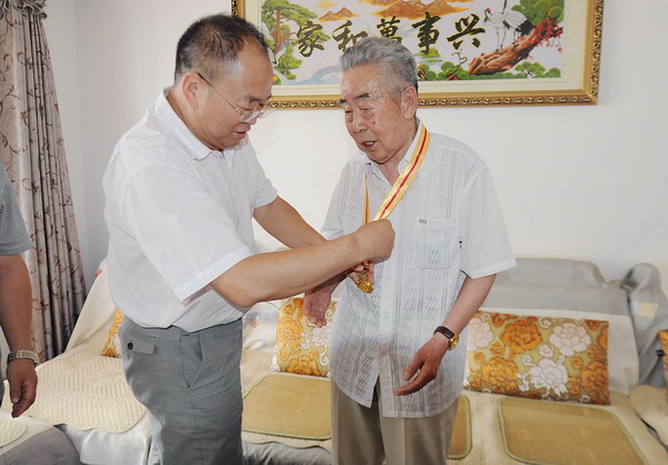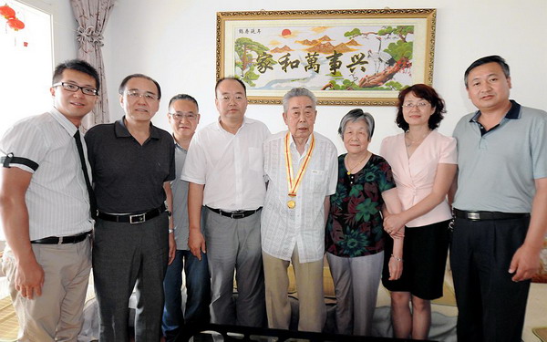 “你是国家的宝贵财富,我们为你感到骄傲。今年是抗战胜利70周年,我们代表全校师生看望你,向你致敬。”校党委书记史百战在慰问时说。