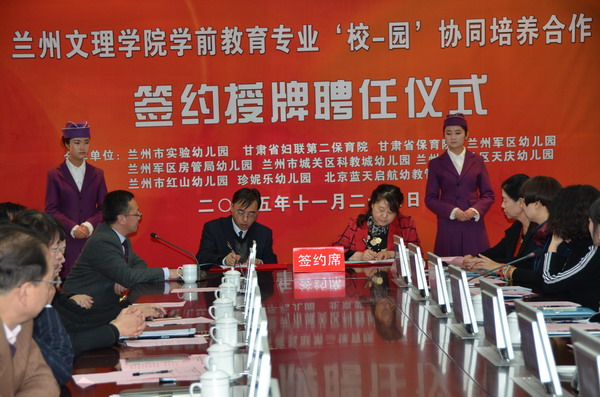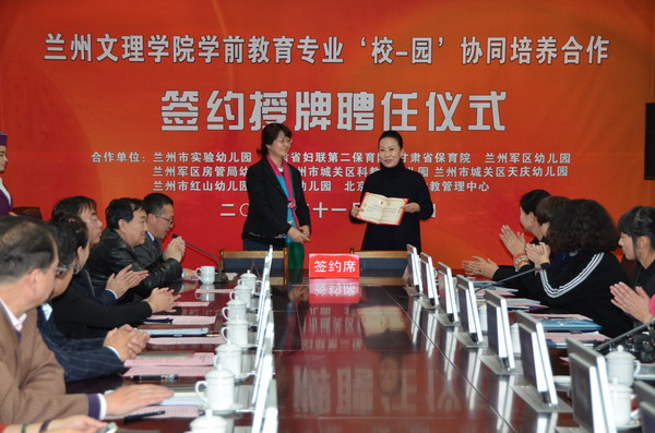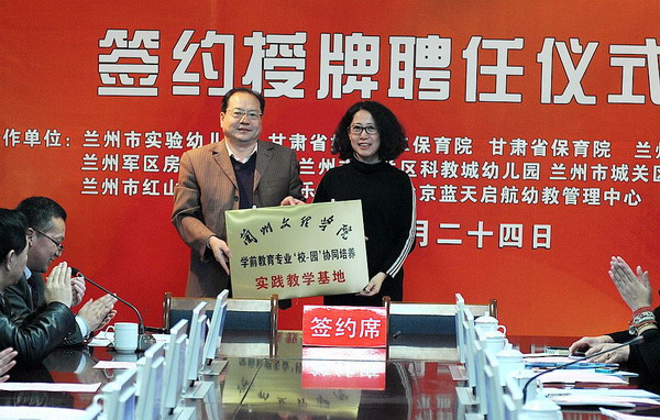 随后,师范学院副院长董小平先后与兰州市实验幼儿园、甘肃省妇联第二保育院、兰州市科教城幼儿园、兰州市天庆幼儿园、兰州市红山幼儿园、珍妮乐幼儿园等各园签署‘校-园’协同培养合作协议。教务处处长薜怀庆为Beat365在上述各园首批挂牌设立的6所“Beat365唯一官方网站学前教育专业‘校-园’协同培养实践教学基地”授牌,甘肃省妇联第二保育院李泉梅院长同时也为在Beat365设立“甘肃省妇联第二保育院教师培训基地”授牌。人事处处长郭萍为Beat365聘任的学前教育专业28位实践指导专家代表一一颁发了聘书。