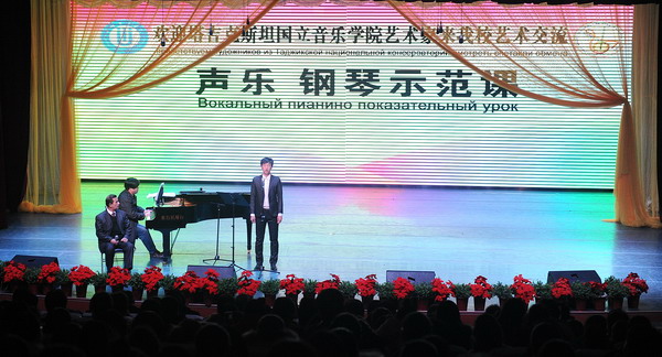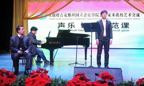 教学活动由塔吉克斯坦共和国人民演员、教授、声乐教研室主任马马德库洛夫・布尔洪・哈托莫维奇和歌唱家努鲁洛耶夫・索季克・霍洛维奇分别对我院声乐学生及教师进行了声乐演唱指导。两位艺术家对师生演唱中的气息、共鸣、咬字等演唱技巧进行了细致、严谨的现场指导,使歌者受益匪浅。塔吉克斯坦共和国人民演员、教授、钢琴教研室主任阿比洛娃・尼吉达・德召拉霍诺夫娜对我院钢琴专业学生演奏的巴赫、肖邦钢琴作品进行了现场指导。尼吉达教授对学生的坐姿、手臂力度运用、触键感觉等钢琴演奏技巧进行了详细讲解和示范。